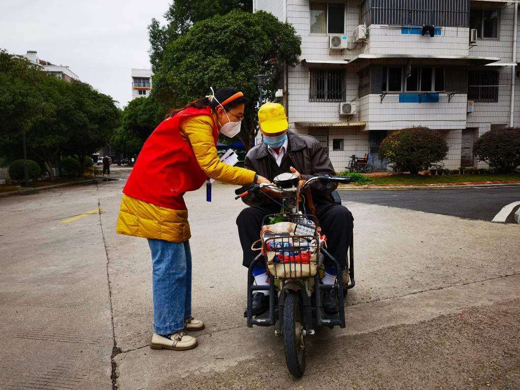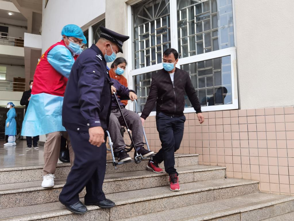 机关党员志愿者在核酸采样现场帮扶老人