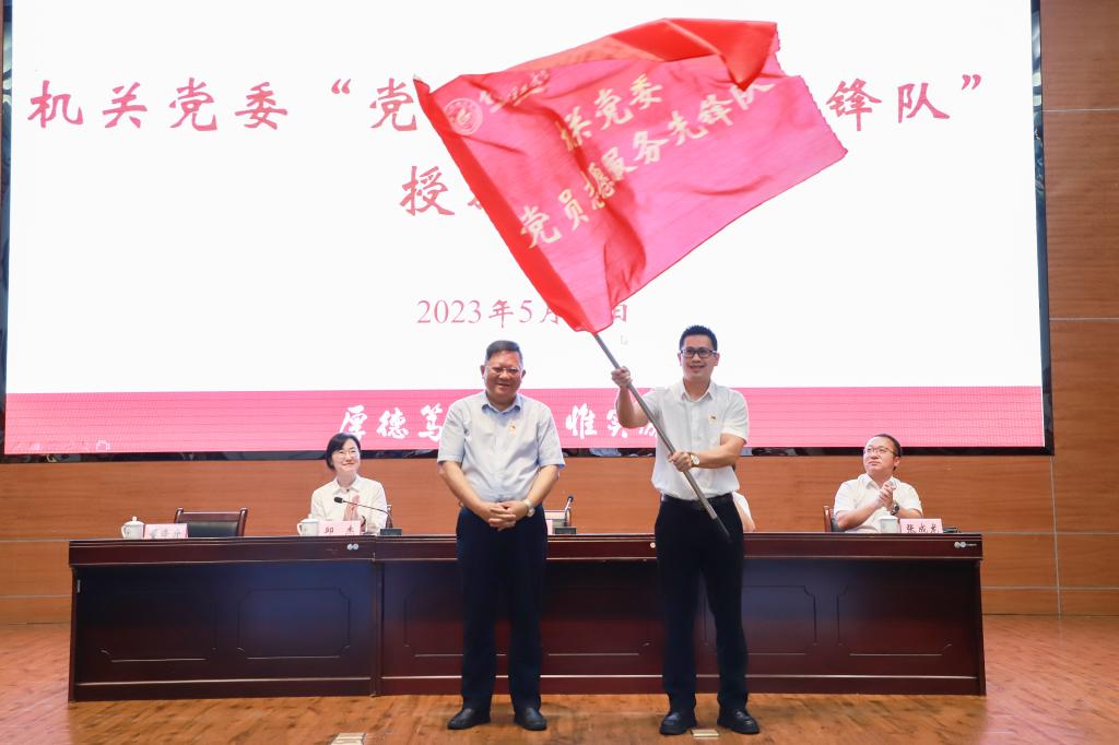 为太阳集团2138网址“党员志愿服务先锋队”授旗