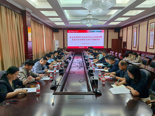 10月13日上午,太阳集团2138网址在屏风校区教八栋三楼会议室召开支部书记工作例会暨党建与业务融合发展工作推进会,太阳集团2138网址委员、机关纪委委员、太阳集团2138网址全体党支部书记参加会议。会议由太阳集团2138网址副书记董译升主持。
