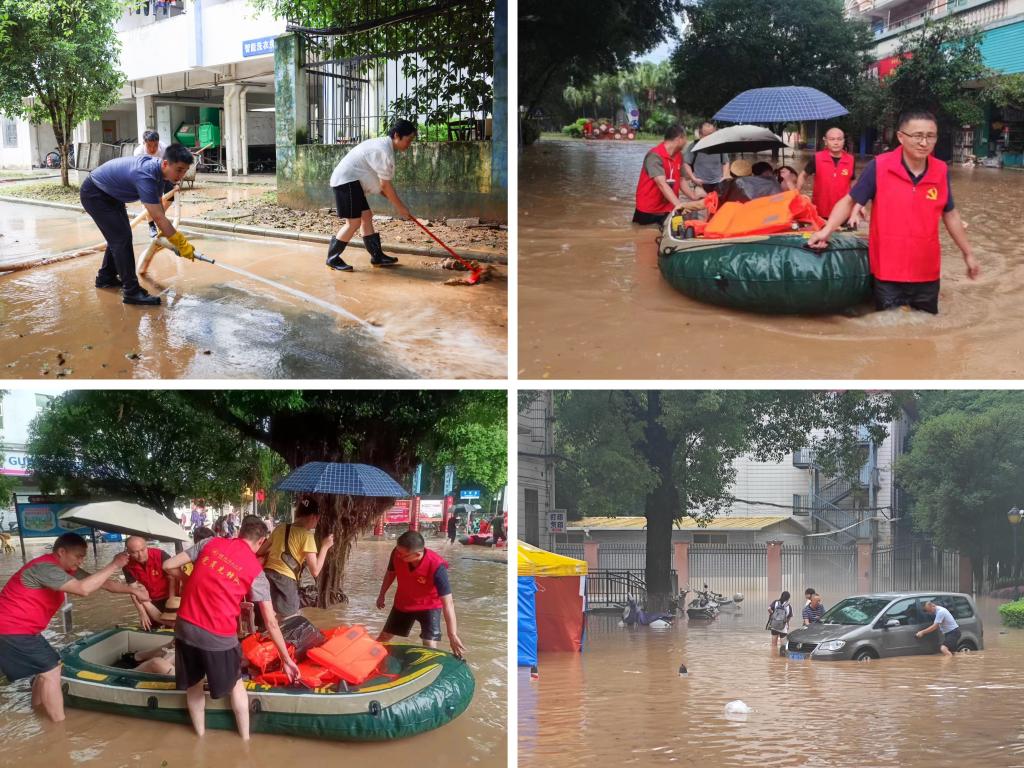 党办校办校友办党支部坚持守在最前沿,密切关注水情,畅通上传下达渠道,全力协调好工作专班运转;资产处党支部果断开放体育馆三楼,妥善安置受灾学生,同时组织专人清理仓库积水,全面清查校园门面险情;基建处党支部群策群力,科学制定洪水区域维修供电方案;校医院党支部尽锐出战,严阵以待做好师生健康医疗保障;宣传部党支部架起镜头,捕捉珍贵瞬间,记录“桂工精神”在洪水中的绽放……防汛救灾是一场大考、一场硬仗,机关党员干部用实际行动回应着“人民至上、生命至上”的使命担当。