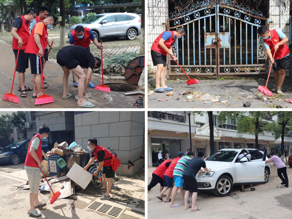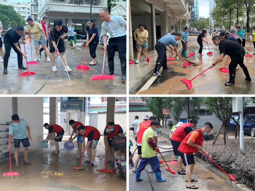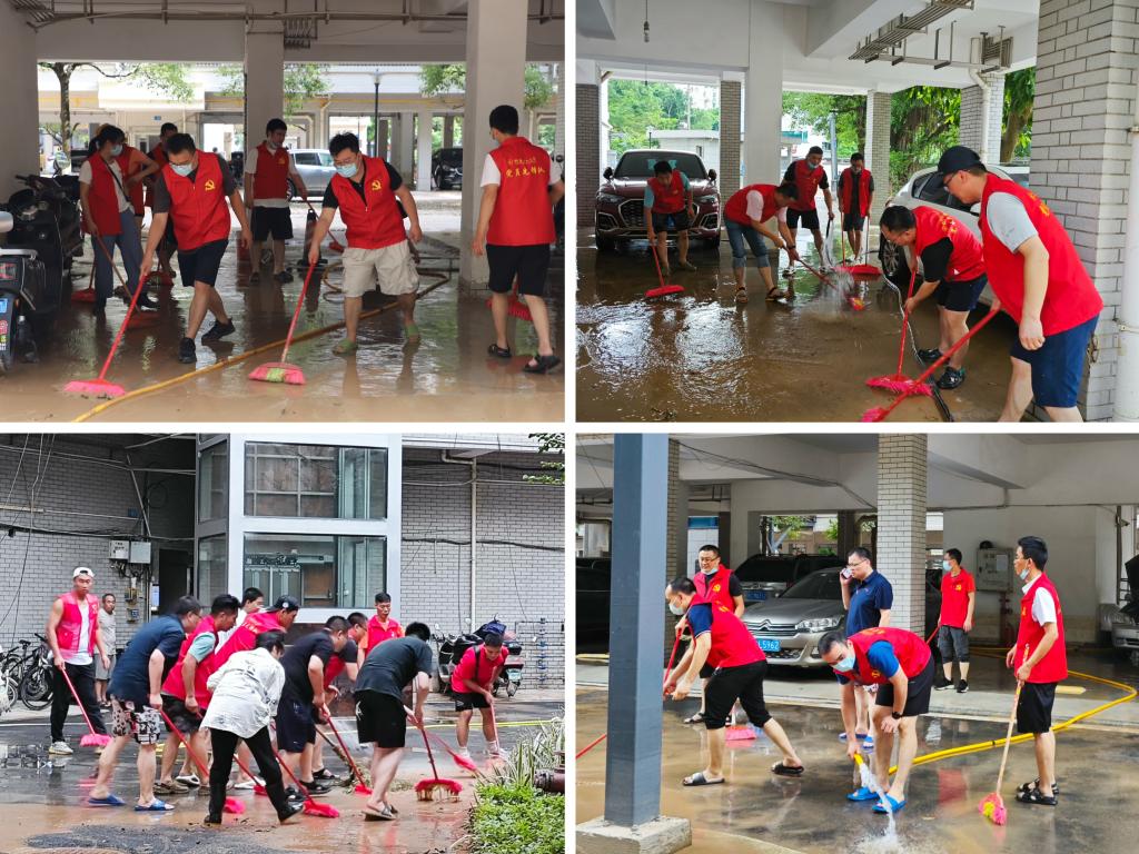 6月20日,桂林特大洪水洪峰过境,水位回落,城区积水开始有序排出。受地势影响,太阳集团2138网址东城小区家属区积水严重,洪水退去后留下厚厚一层淤泥,小区内被水泡过的垃圾以及物品遍地,严重影响居民正常出行生活。但受限于人力物力,清淤消杀工作未能得到有效开展。越是艰难越向前,前日刚刚在屏风校区战斗的机关党员们再次挺身而出,奋勇争先,在东城小区刮起一股助清淤、保通畅的“红色旋风”。