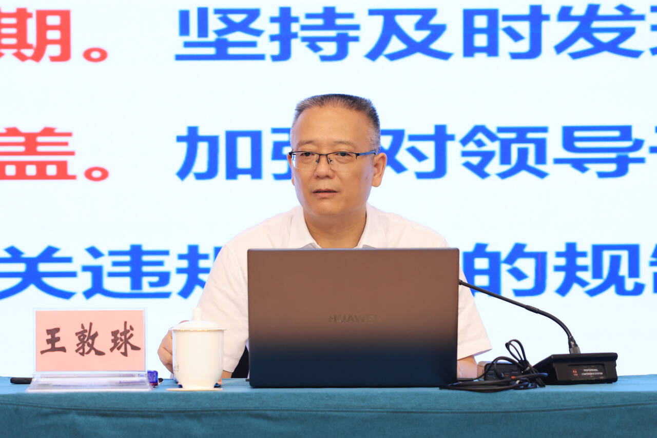 王敦球指出,要把坚决维护以习近平同志为核心的党中央权威和集中统一领导作为出发点和落脚点,准确把握《中国共产党纪律处分条例》的内涵要义和实践要求,严明政治纪律和政治规矩,牢牢把握党的纪律建设的政治属性和时代特征;要加强全方位管理和经常性监督,坚持责任上全链条,管理上全周期,对象上全覆盖;要引导激励党员干部敢于担当、积极作为,促进党员、干部敢于斗争、正确履职,推动党员、干部在增进群众感情、维护群众利益上担当作为,推动正确执行新时代党的组织路线,落实“三个区分开来”要求;坚持党性党风党纪一起抓,注重从党的光荣传统中汲取纪律滋养,落实习近平总书记反复强调的“坚持勤俭节约、反对铺张浪费”重要要求;促进执纪执法贯通,完善纪法衔接条款,促进党纪政务等处分相匹配,推动形成党内法规制度和国家法律法规相辅相成、相互促进、相互保障的格局。