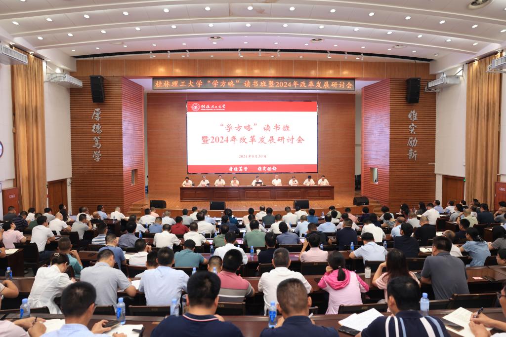 为深入学习贯彻党的二十届三中全会精神、习近平总书记关于教育的重要论述和习近平总书记关于广西工作论述的重要要求,认真贯彻落实学校党委三届七次、八次全会精神,科学谋划学校2024年秋季学期各项工作,加快推进特色鲜明、国内知名高水平理工大学建设,推动学校各项事业取得新突破,8月30日上午,学校“学方略”读书班暨2024年改革发展研讨会在屏风校区图书馆报告厅开幕。校领导邓军、王敦球、吴志强、周国清、韦学敏、王磊、黎贞崇、罗盛锋、曾繁荣,党委常委唐壮东、叶昊、邱杰,校长助理张成龙、张树光出席会议。全体中层干部,民主党派、统战团体代表参加会议。
