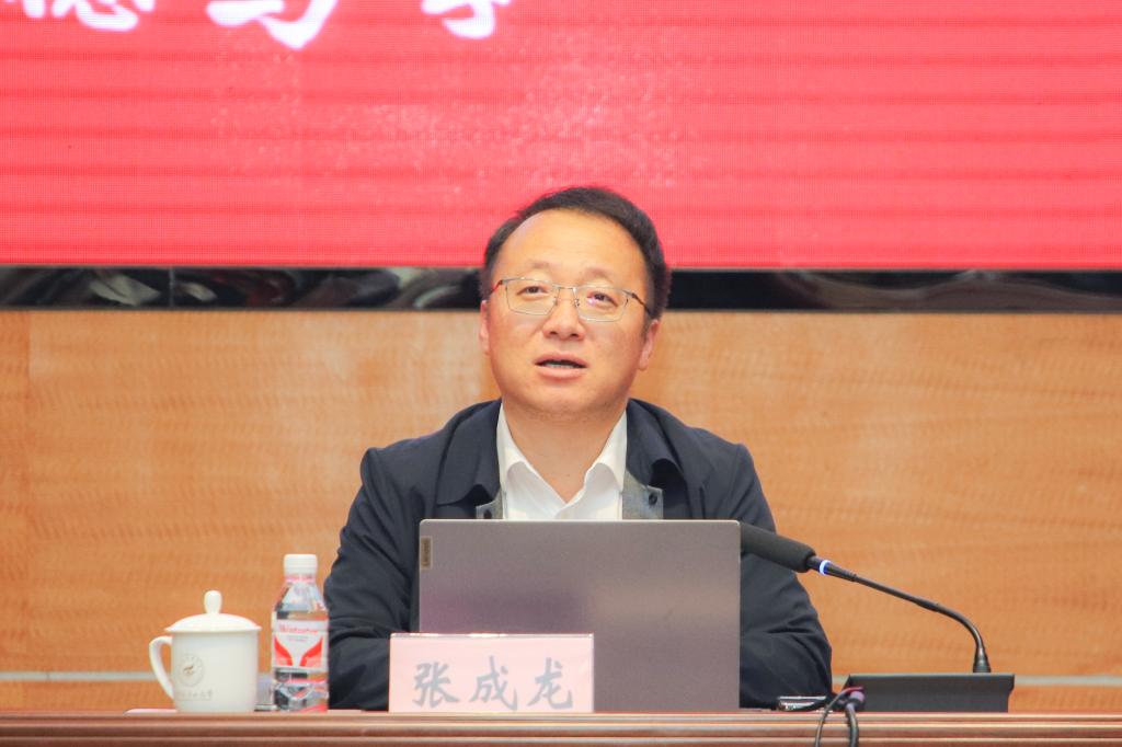 校长助理、党办校办法务办主任张成龙作专题辅导报告