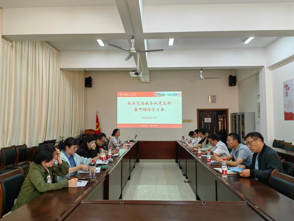 10月18日下午,教务处党支部在屏风校区体育馆副楼116会议室专题学习党的二十大精神。会议由支部书记游少鸿同志主持,支部全体党员参加本次学习。