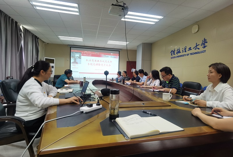 4月27日下午,教务处党支部在雁山校区行知楼B301会议室开展了党课学习活动,活动由支部书记游少鸿同志线上主持,支部全体党员及党员发展对象参加了本次活动。