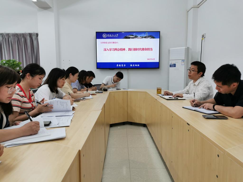 4月28日,人事处党支部在雁山校区行知楼B618开展以“深入学习两会精神 践行新时代使命担当”为主题的党日活动。受支部书记辛立章同志委托,活动由支部组织委员、人事处副处长冯良元同志主持。