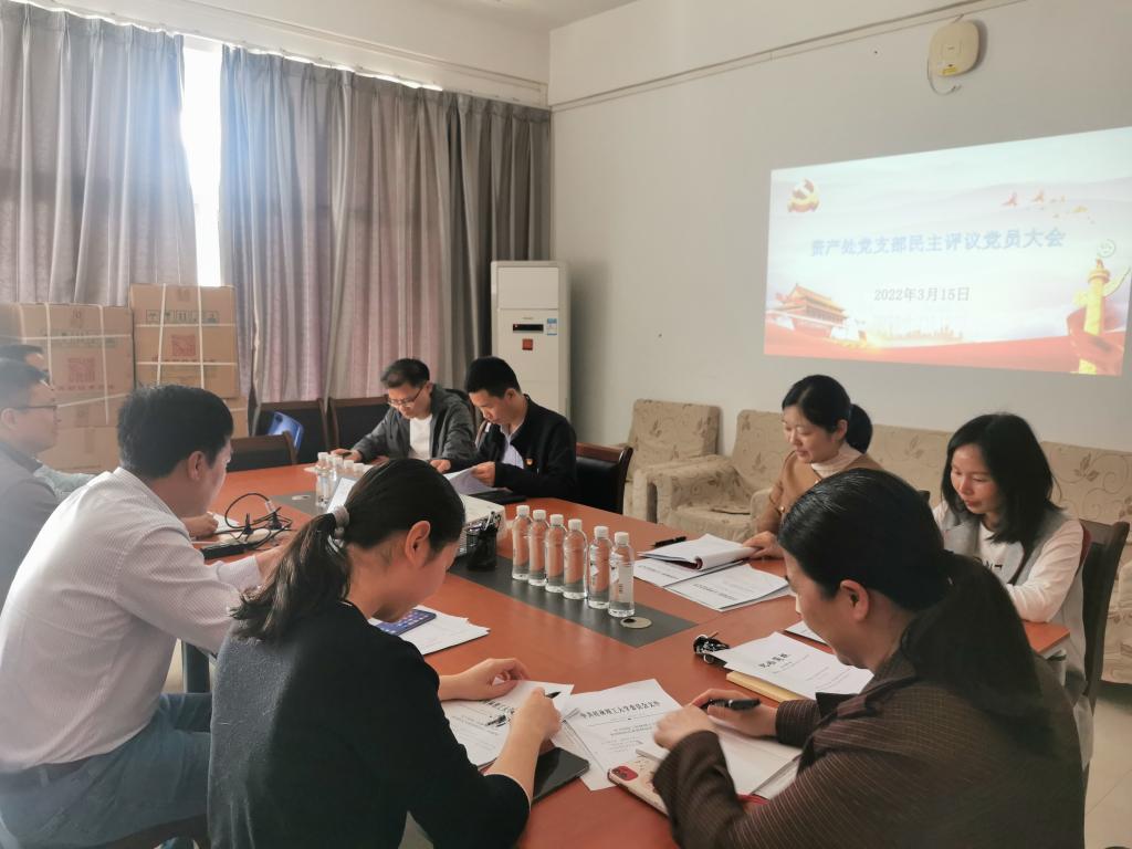 民主评议党员制度是加强党的建设的一项重要制度。根据太阳集团2138网址工作安排,结合支部实际,2022年3月15日,资产处支部全体党员在雁山行知楼B401会议室召开了2021年度民主评议党员会议。