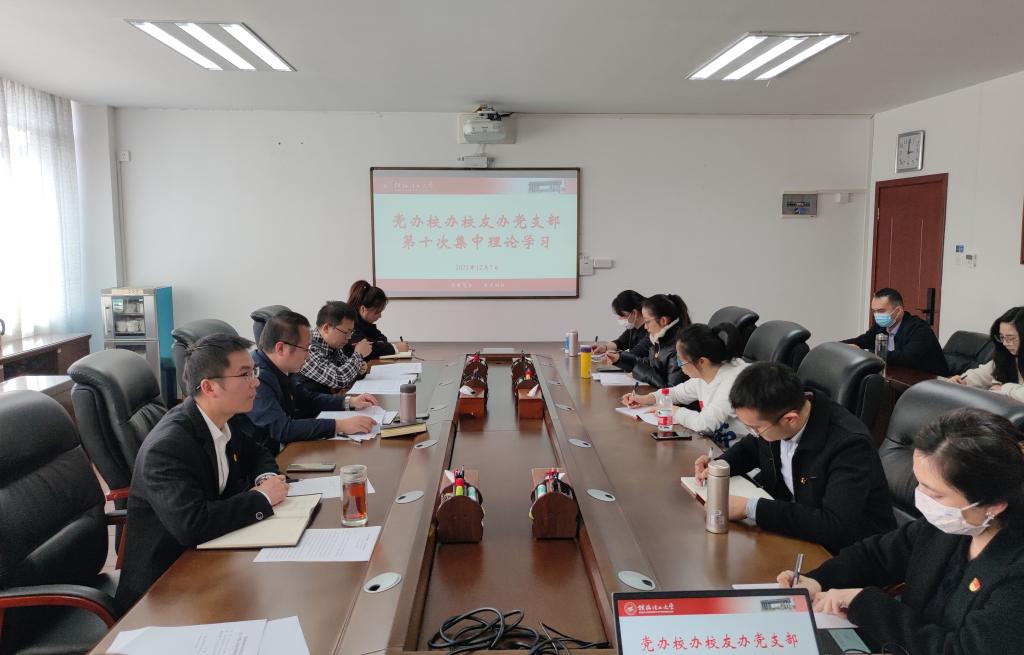 12月7日下午,党办校办校友办党支部在雁山校区第二会议室举行2021年第十次集中理论学习,支部全体党员参加,支部书记、党办校办主任张成龙主持会议。