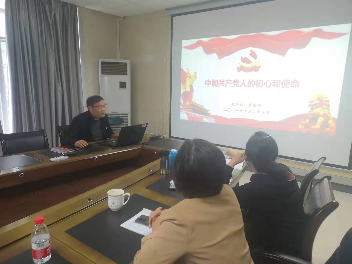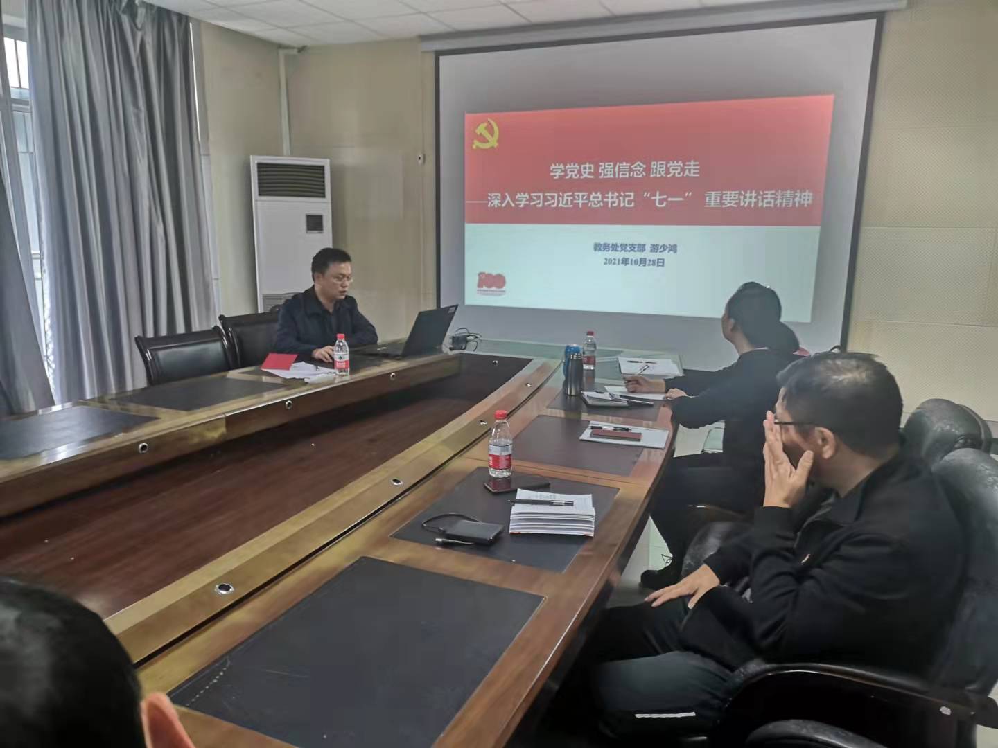 10月28日下午,教务处党支部在雁山校区行知楼B301会议室召开党史学习教育专题党课活动,支部全体党员同志参加了本次活动。