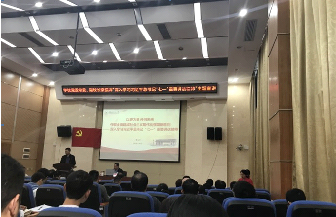 宣讲会上,梁福沛副校长从四个主题进行宣讲:一、深入把握习近平总书记“七一”重要讲话精神的新思想、新观点、新要求;二、深入把握中国共产党百年奋斗主题和伟大成就;三、深入把握全面建成社会主义现代化强国的根本要求;四、深入贯彻习近平总书记“七一”重要讲话精神。