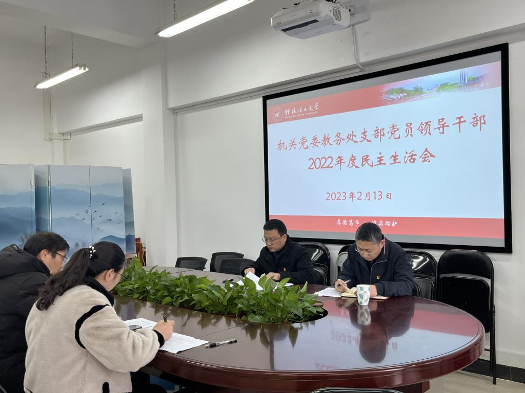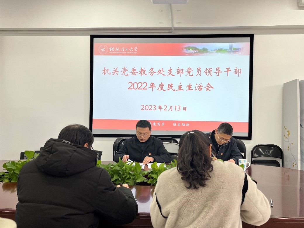 2月13日下午,教务处党支部在屏风校区体育馆副楼502室召开2022年度党员领导干部民主生活会。会议由支部书记游少鸿同志主持,支部党员领导干部参加了本次生活会。