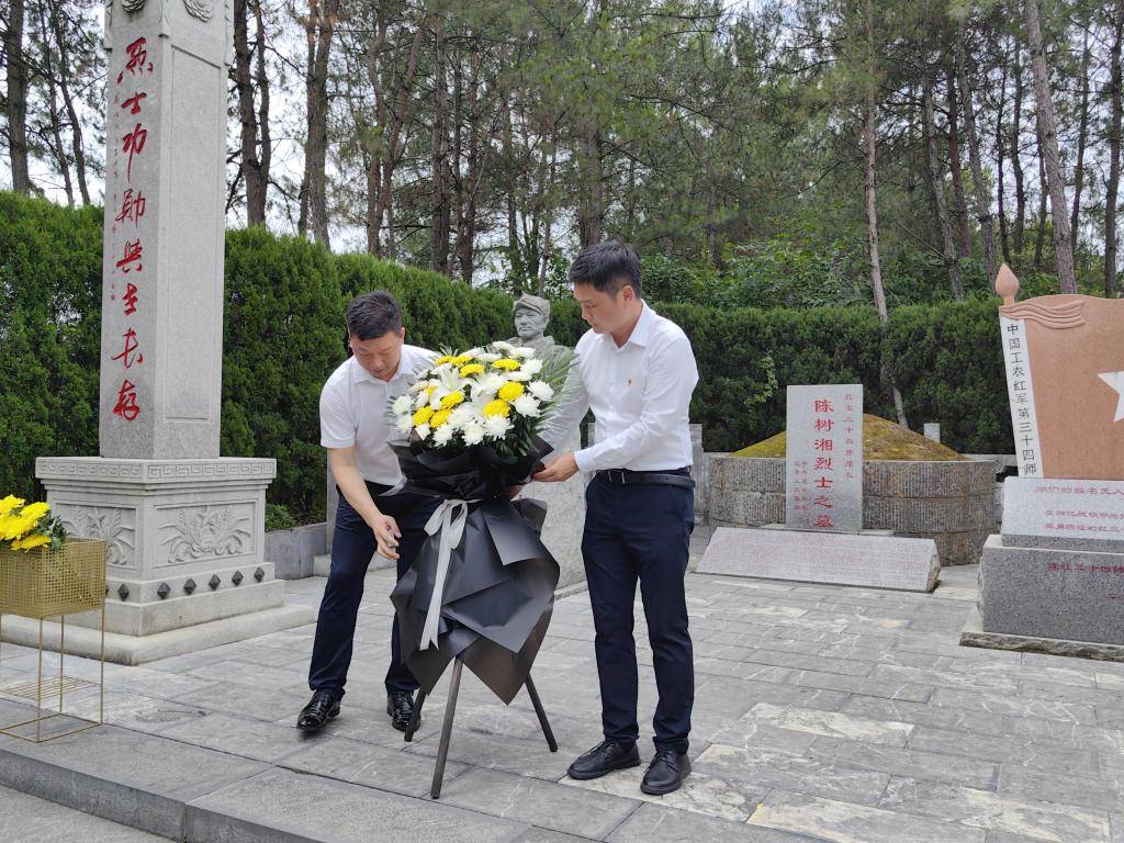 在讲解员的引导下,首先来到了陈树湘烈士墓前,全体党员满怀敬仰和哀思,举行向陈树湘烈士敬献花篮仪式,在陈树湘烈士墓、红军三十四师烈士墓、革命烈士纪念碑前默哀、鞠躬,祭奠缅怀他们为国家前途、民族解放不畏牺牲、不屈斗争的革命精神和对党绝对忠诚的坚定信仰。在纪念馆内,全体党员详细地了解陈树湘烈士的生平、革命事迹,特别是“宁断肠不断脊梁”的壮烈故事,在关于陈树湘烈士的图片、文字、史料前久久驻足,为陈树湘烈士短暂而又悲壮一生热泪盈眶。在纪念馆多功能报告厅,全体党员聆听了微党课《断肠明志铸忠魂》,重温那段艰苦卓绝的革命历史,进一步了解陈树湘烈士践行“为苏维埃流尽最后一滴血”的铮铮誓言和感人故事。最后,在纪念馆前广场,全体党员面对党旗,紧握右拳,重温入党誓词,筑牢初心使命之基。