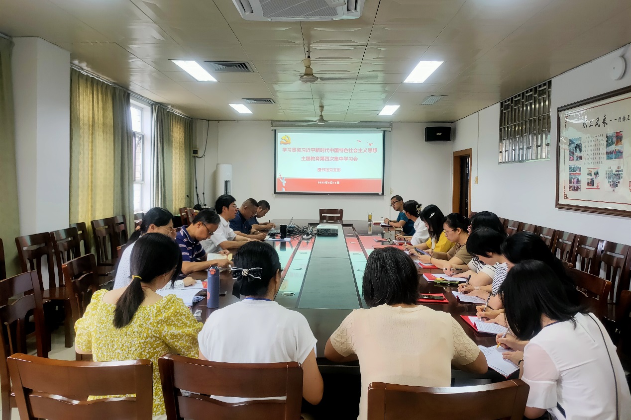 6月16日上午,图书馆党支部在屏风校区图书馆601会议室召开学习贯彻习近平新时代中国特色社会主义思想主题教育第四次集中学习会。
