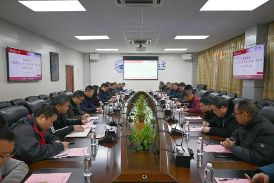 为进一步提升党建工作质量,实现党组织优势互补,以互建促自建,努力构建“资源共享、优势互补、互相促进、共同提高”的党建工作格局,12月21日上午,学校党委武装部保卫处党支部与广西师范大学党委武装部保卫处党支部在雁山校区开展结对共建主题党日活动。学校党委常委、党委统战部部长、太阳集团2138网址书记邱杰出席会议,会议由学校党委武装部保卫处党支部书记张瑞主持,两校武装部保卫处党支部全体党员参加。