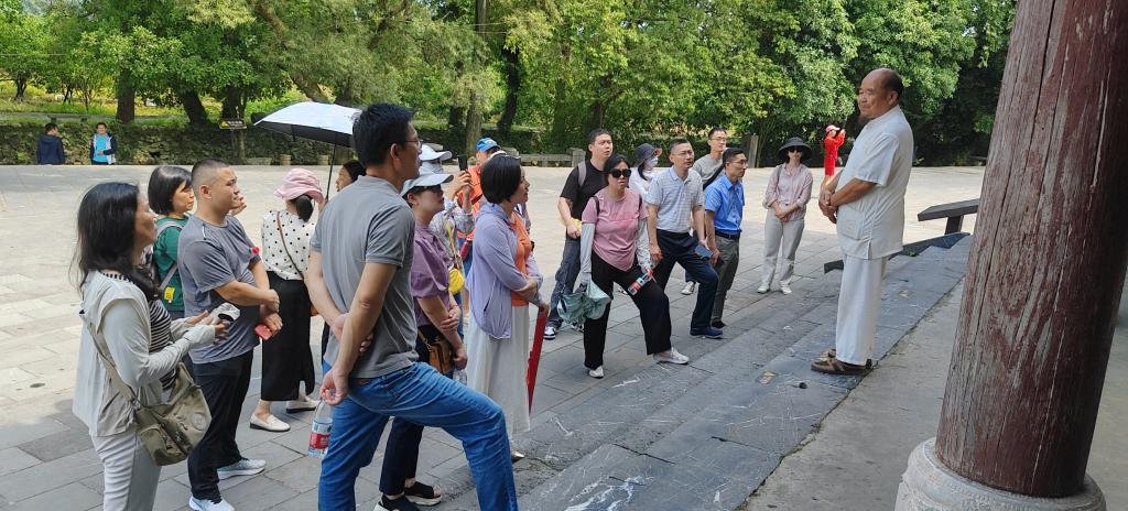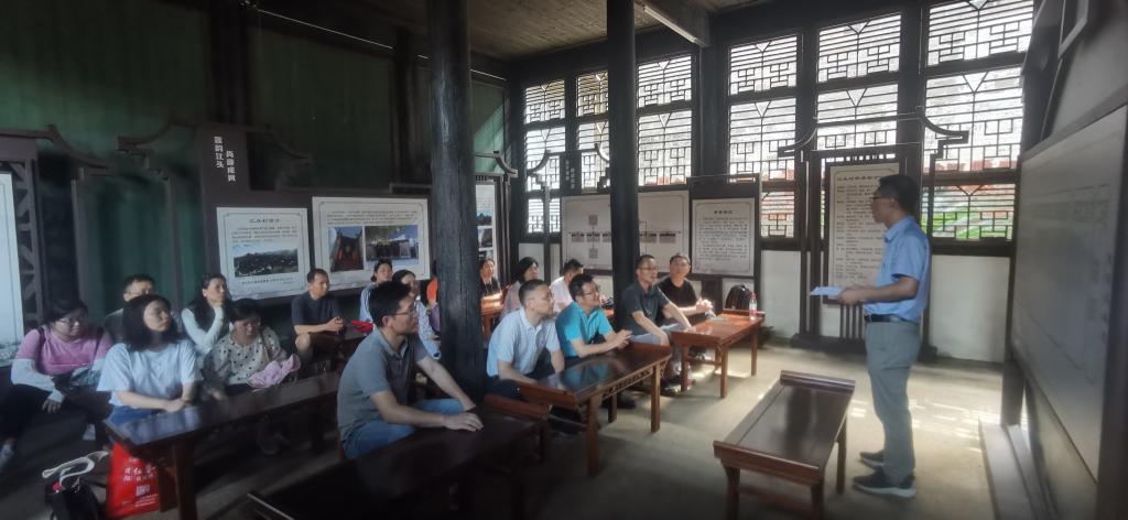 跟随讲解员的介绍,党员们先后参观了护龙河、字厨塔、爱莲家祠、举人路、进士街、清官故居、金钱井、聪明井等建筑和文化遗迹,切身感受到廉政文化教育基地深厚的历史文化底蕴,接受“爱莲”文化的熏陶。在爱莲家祠中,教务处余文成同志给支部党员作题为《守正创新 项目赋能 监控助力 推动学校思政课建设内涵式发展》专题党课。
