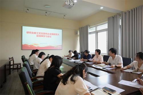 孙巍领学了邓军书记在2024年机关工作座谈会上的讲话,传达了学校2024年机关工作座谈会会议精神。她指出,学校2024年机关工作座谈会是在全校学习贯彻落实党的二十届三中全会精神、全国教育大会精神重要节点上召开的一次重要会议;邓书记的讲话,为推动党建与业务深度融合,以新思路推动学校发展新气象、支部党员更好履职担当加了油、鼓了劲;为面临新机遇新挑战的研究生思政教育、培养管理、教育教学、学科建设等工作提出了新要求,明确了新方向。
