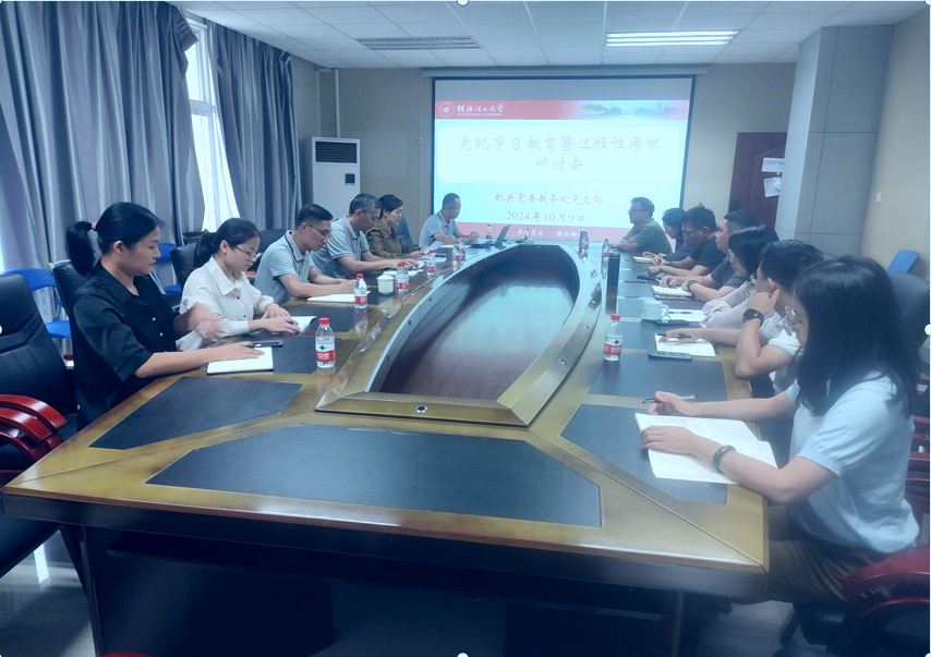 为落实学校党委关于巡察整改工作的部署要求,进一步加强党的纪律建设,提升党员干部的纪律意识和规矩意识,同时优化教学管理,提高教学质量,10月9日,教务处党支部举办了“巡察整改行动月”专题学习研讨会。此次会议以“党纪学习教育暨过程性考核研讨会”为主题,由教务处党支部书记康志强主持。